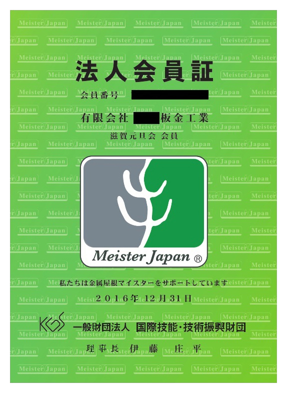 「ものつくりマイスター」金属屋根部門として、優れた製品と技術、高い技能を生かし、高品質のものつくりを実現することが競争力を高め、職人の地位や積算単価の向上につながるとの考えのもと発足しました。