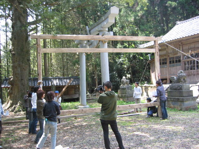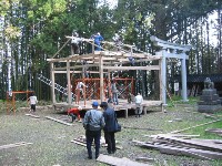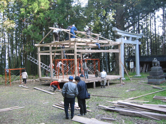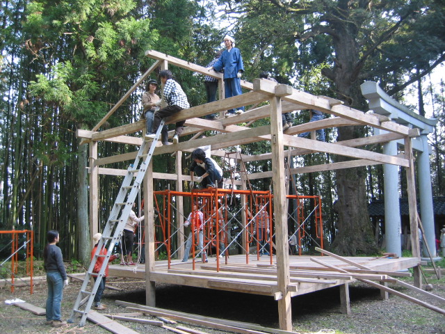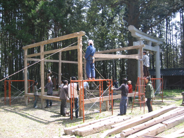旧赤泊村大椋神社に残る組み立て舞台の建設を通して、木造建築について学ぼうというのが目的です。