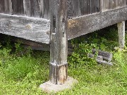 "根継ぎ”という方法で修理することになりました。写真の柱は角材を丸材で継いでいました。 |