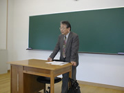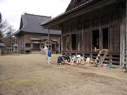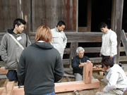 講義「文化財における痕跡調査」日塔和彦氏 日塔氏は早くから文化財保存に従事され、著書も多数で特に痕跡調査のエキスパートして知られています。 今回の講義は、佐渡建築組合組合長の加藤一馬氏のご厚意により佐渡職業訓練校の教室を借りて、行われました。