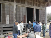植田旅館で、痕跡調査の実習 講義の後、佐渡地域活性化委員会事務局長 廣瀬俊三氏のご厚意により紹していただいた佐渡郡金井町にある植田旅館で、痕跡調査の実習を行いました。この旅館は120年前、明治初期に建てられたものです。