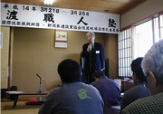 「木造建築文化は非常に重要であり、今後の佐渡の発展のためにも、まさに佐渡職人塾は、大きな役割を果たしていくであろう。その意味でも受講生の方々の今回の講習会の修了は大変喜ばしいことである。」と挨拶される小田初太郎町長